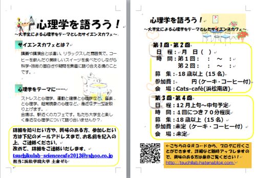 心理学を語ろう!@カフェサイエンスカフェとは? 講義や講演会とは違い、リラックスした雰囲気で、コーヒーを飲んだり美味しいスイーツを食べたりしながら科学・技術の面白さや疑問を素直に語り合える場のことです。 心理学をテーマに…… ストレスと心理学、…
